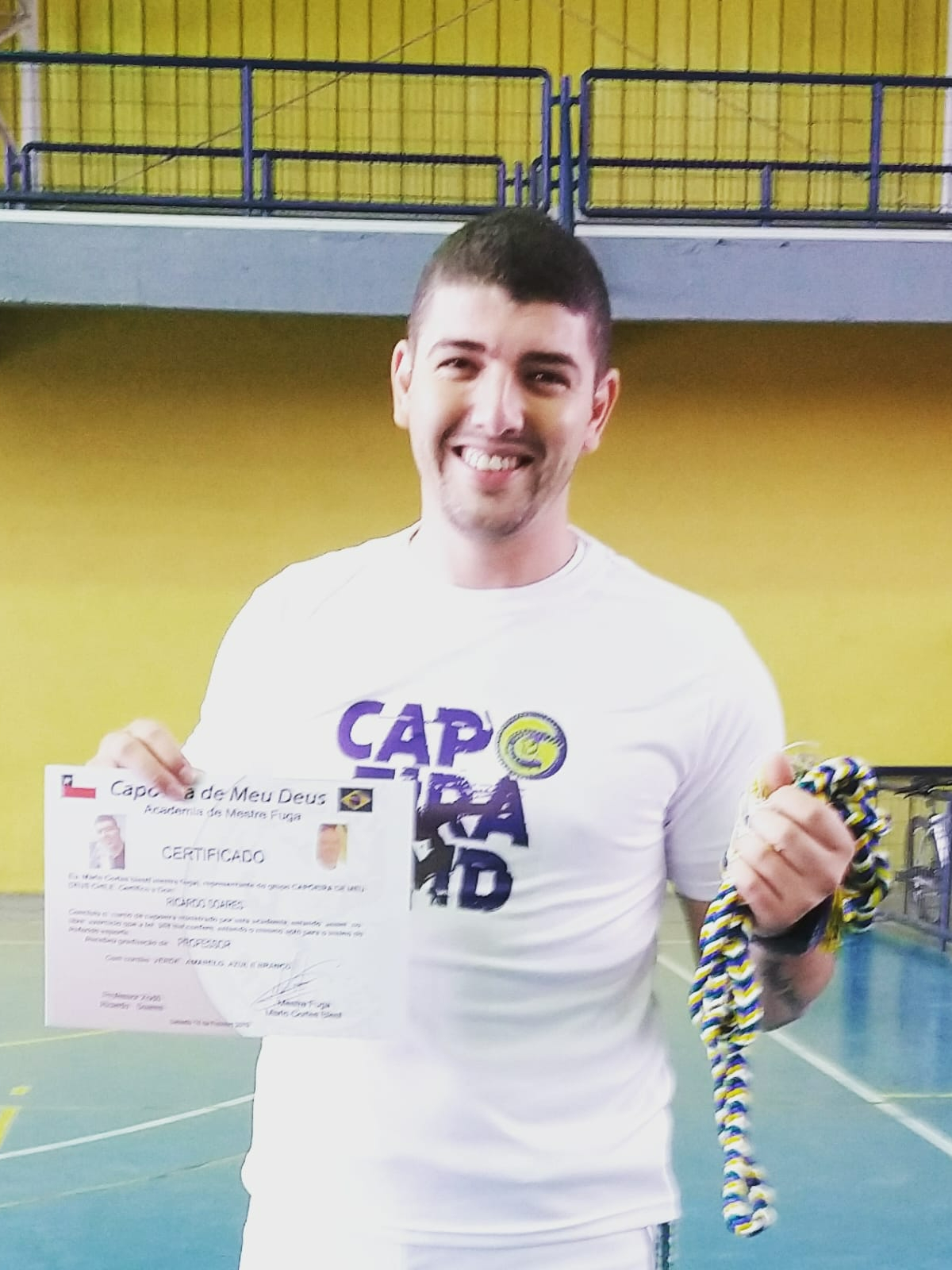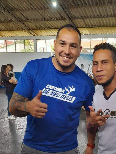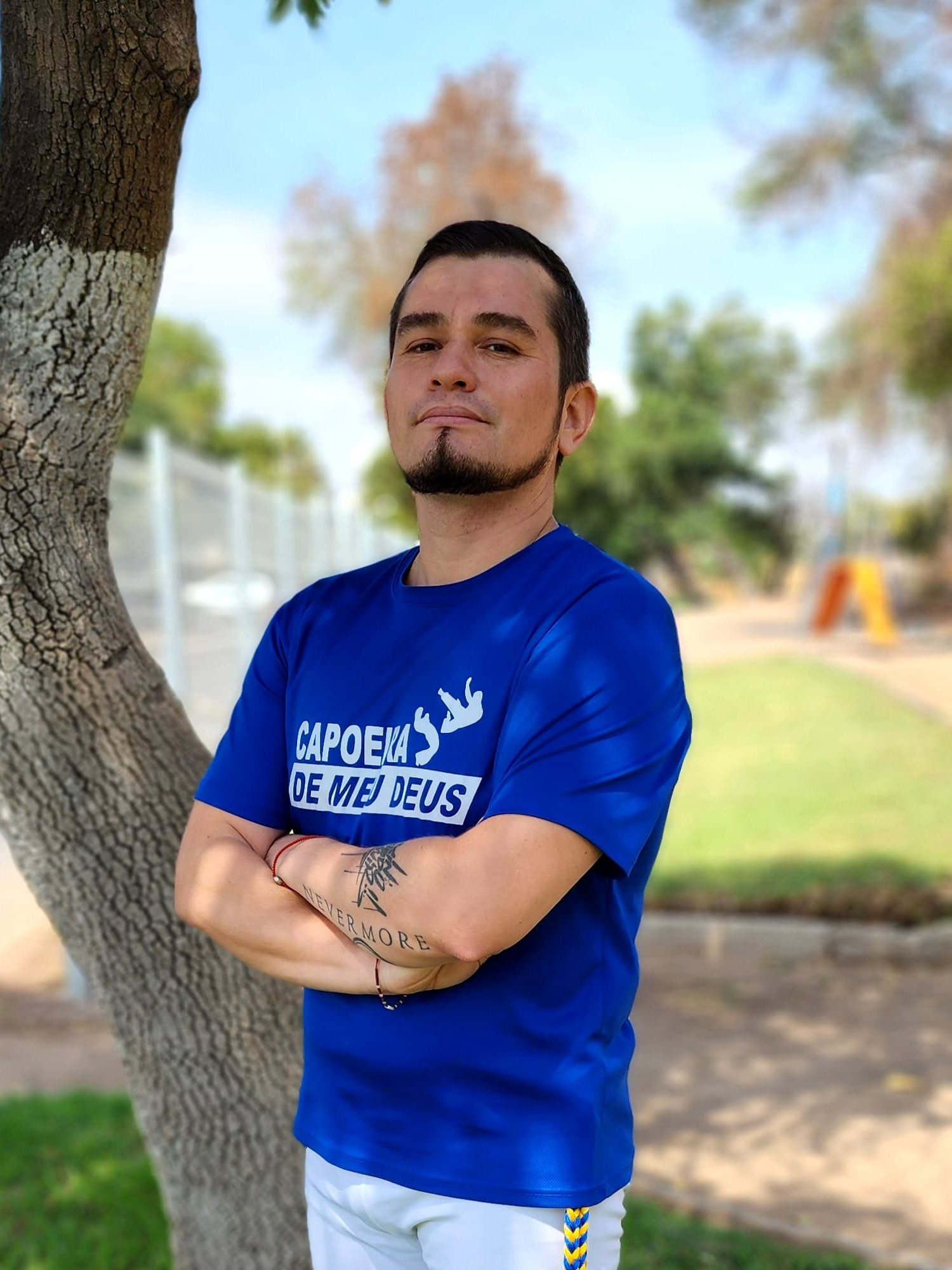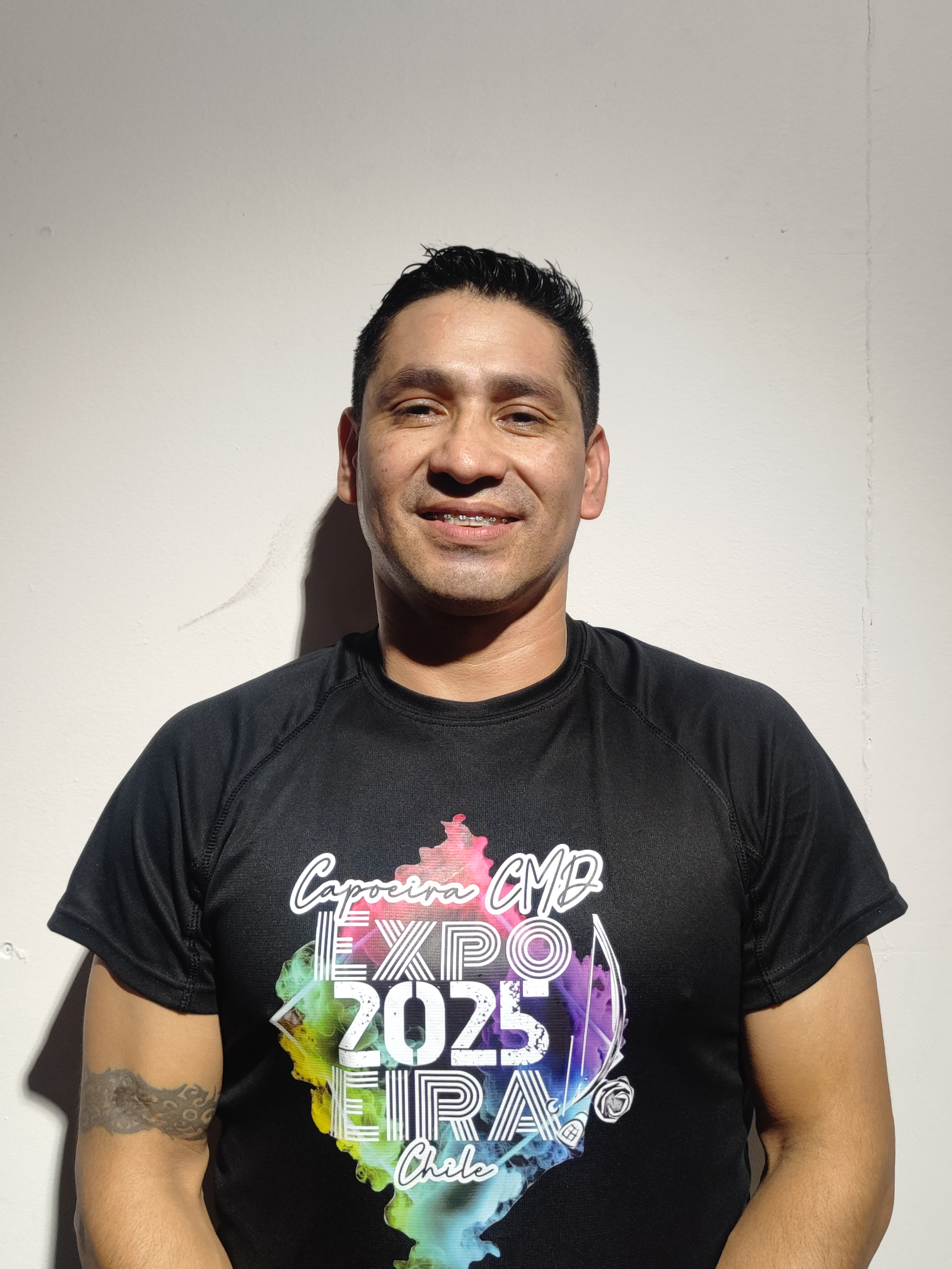 Comencé a practicar capoeira en el año 1994, en las calles y plazas de Lo Prado, sin pensar que este deporte iba a ser parte de mi vida. Después de algunos años, en 1997, debido a pequeñas búsquedas y a la película Only the Strong, se concreta una idea entre mi hermano, mi primo y yo: formamos el grupo CMD. A fines del año 1999, conocemos a varios grupos y practicantes, entre ellos a Nilson Gloria, profesor de capoeira que nos hizo una propuesta para participar en algunos proyectos. En el año 2000 ganamos el primer torneo de capoeira en Chile. A mediados del año 2001 decido retirarme de la “Capoeira Show”, la cual me hizo participar en muchas exhibiciones en diferentes lugares, como en la televisión, restaurantes, municipalidades, entre otros. Así procuro profesionalizar la capoeira que estaba practicando, y debido al crecimiento de la agrupación y mi responsabilidad como líder, decido buscar un nuevo rumbo y acercarme a un linaje brasileño para formalizar mi camino como capoeirista. Así conozco a Mestre Carioquinha, quien supervisa mi trabajo y toma la decisión de formarme como profesor en el año 2002. Para ese entonces era una decisión difícil, aunque decido aceptarla debido a la responsabilidad con los jóvenes a mi cargo. Asumí este gran reto sin imaginar las consecuencias que me traería. Así fui actualizando mi visión de una capoeira de calle para acercarme a una más académica y formal. Esto me obligaba a buscar mucho más. En 2009 arriesgo todo lo que tengo para viajar a Brasil, llevando a Mestre Carioquinha conmigo. En este viaje participé en un congreso de capoeira en la Universidad de São Paulo, y visité varias academias, como la academia de Mestre Ananias, Mestre Plínio y Mestre Zumbi. Para concluir este viaje, participé en la roda legendaria de La República, en São Paulo. En 2012, en Chile, Mestre Carioquinha me forma como Mestre en primer grado, y debido a esto y a mi inconformidad, decido viajar a Brasil a la brevedad para corroborar esta graduación. Me dirigí al estado de Paraná, a la ciudad de Cambé, donde participé en un evento en el que fui reconocido por muchos Mestres como Mestre de capoeira legítimo. En el año 2017, Mestre Carioquinha me otorga el grado de Mestre en segundo grado. En 2018 decido emprender mi camino separado de Mestre Carioquinha y continúo formando CMD en diferentes regiones de Chile y formando profesores. En ese mismo año tomo la gran decisión de apadrinar al primer grupo en el extranjero, llamado Ginga Solta, dirigido por el Profesor Urbano. En 2019 apadrino al grupo Gonga Capoeira, a cargo del Mestre Mironga, a quien formé como Mestre en 2025. En 2023 me formo como Mestre en tercer grado bajo la supervisión de Mestre Zumbi, quien me apadrina. También se me abre la oportunidad de participar como integrante de una liga brasileña, respaldada por Mestre Assanhaco, presidente de la Associação Pássaro da Liberdade. Esta liga me acredita como Especialista en Instrucción de Capoeira. Ese mismo año se forma Capoeira de Meu Deus en Mendoza, Argentina, a cargo del Estagiário Grinch. En 2024 tengo el placer de formar al primer Mestre en el extranjero: Mestre Xodó, en la ciudad de Sarandi, Paraná, Brasil.
