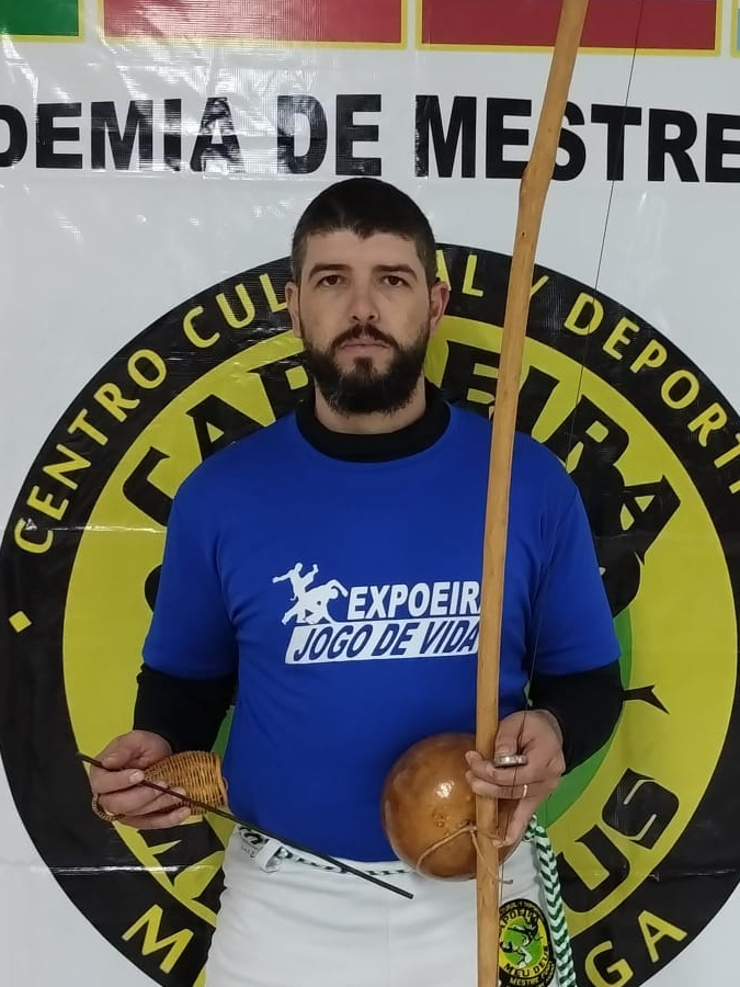Em 1999 no distrito de Primavera, município de Rosana no estado de São Paulo, eu com 8 anos de idade, fui maticulado em um projeto chamado APROMEP. Nessa época, minha mãe era casada com o pai do meu irmão, um homem grande que não tinha muita paciência, e constantemente me batia de forma exagerada, minha mãe tentando resolver a situação me matriculou na APROMEP. Nesse projeto conheci a capoeira, arte que nunca mais me abandonou, confesso que tentei desistir, mas quando menos esperava la estava ela na curva da esquina. Conheci meu primeiro professor, se chamava Picolino, no grupo União Brasileira, sei que esse grupo era coordenado por três Mestres, Buchecha, Ari e Cidão, com cede na cidade de Presidente Prudente estado de São Paulo, não tenho mais informações sobre como anda esse grupo, não sei nem se ainda existe. Cerca de dois anos depois acabei sainda do projeto, minha mãe percebeu a falta que eu sentia da capoeira, procurou uma academia e fez minha matrícula, assim comecei a treinar com meu segundo professor chamado Pastel, também do grupo União Brasileira, com ele cheguei até minha terceira corda cor amarela. No ano de 2003 eu ja estava com 12 anos, minha mãe agora solteira resolveu mudar de cidade, fomos morar em minha cidade natal, chamada Querência do norte, interior do Paraná. Em Querência conheci o professor Baiano do grupo Raça, continuei os treinos com ele por mais ou menos um ano, em 2007 minha mãe resolveu se mudar para Londrina, norte do Paraná. Fomos morar na zona norte de Londrina, no jardim Gaveta, essa época tive a felicidade de conhecer meu primeiro Mestre, o Sr Vanderlei o famoso Mestre Vande do grupo de capoeira Negreiros. Com o mestre fiquei por dois anos, então com a idade adulta veio as responsabilidades e obrigações, comecei a trabalhar na cidade vizinha chamada Cambé, não conseguia acompanhar os treinos pela distância e os horários. Um belo dia quando dobro a esquina la estava ela me esperando novamente, um cartaz enorme divulgando aulas de capoeira, mais um projeto de capoeira, no jardim Ana Rosa em Cambé! Cheguei no local, uma ONG chamada Refúgio, onde havia várias atividades gratuitas para crianças carentes, conheci lá pessoas maravilhosas, como o diretor do projeto Sr pastor Márcio, e o professor Sr Fábio, pessoas maravilhosas, super atenciosas e prestativas. Fabio que prestava aulas de capoeiras me acolheu e prontamente começou a me ensinar tudo que sabia, com ele consegui meu cordão de instrutor cor azul. Ja em meados de 2.011 o professor Fábio decidiu parar com as aula por motivos pessoais, em 2.012 resolveu com o Pastor Márcio que passaria as aulas de capoeira para mim, assim sendo meu primeiro trabalho remunerado com capoeira. Eu agora a frente de um responsabilidade tão grande logo senti falta de um mentor, alguém para me aconselhar, fui procurar o Fábio e suas palavras foram "tudo que eu podia fazer por você eu ja fiz, agora vai procurar seu caminho". Assim eu fiz, jovem cheio de vigor e coragem comecei a visitar todas as rodas de capoeira que ouvia dizer, numa dessas andanças conheci então o Sr José Guanabara o grande Mestre Guanabara da Associação de capoeira engenho novo Com mestre Guanabara consegui minha formatura, consegui meu cordão de professor cores verde, amarelo, azul e branco no ano de 2015. Nesse tempo fiz várias viagens pelo país, e me mudei de Cambé para Maringá, também no norte do Paraná, em uma dessas conheci um Chileno chamado Mário cortes o incrível Mestre Fuga, do grupo de capoeira Capoeira de Meu Deus, CMD. Mestre Fuga vem da mesma linhagem da capoeira paulista, acabei tendo uma afinidade com Mestre fuga e me filiando ao seu grupo CMD, fui ao Chile conhecer seu trabalho e receber o reconhecimento de professor de suas mãos, fazendo minha primeira viagem internacional. Fiz muitas amizades e adquiri muito conhecimento junto com então meu Mestre Fuga, no ano de 2024 atendendo a um pedido do Mestre, fiz mais uma viagem a Santiago capital do Chile para auxiliar no evento expoeira que acontece anualmente, essa viagem foi extremamente difícil, pois quase perdi o ônibus que sairia de Maringá para Barra Funda São Paulo, no caminho o ônibus quebrou, com previsão para uma hora de atraso, com certeza eu iria perder o vôo, fiquei muito preocupado e junto com outros passageiros conseguimos chamar um uber, que nos levou até a rodoviária, conseguindo assim pegar meu vôo nos últimos instantes. Ja em Santiago, o evento aconteceu de maneira excepcional, com uma grande surpresa que nunca imaginaria, Mestre Fuga me surpreende com a graduação de Mestre de primeiro grau cor verde e branca. Minha maior alegria e surpresa ja vivida na capoeira! Todos sabiam, todos mas ninguém deixou transparecer nada eu não fazia ideia doque estavam tramando. Depois de nove anos como professor, voltei Mestre, uma mudança tão grande que quando cheguei de volta no Brasil foi que a ficha caiu de verdade, e comecei a ter uma grande dificuldade de me aceitar como agora Mestre, me sentia totalmente despreparado, indigno de tal mérito. Hoje pouco mais de um ano, com 34 anos de idade ja conformado com minha formatura de Mestre, morando em Sarandi no Paraná, venho construindo minha história, trabalhando com a capoeira CMD de meu Mestre Fuga.